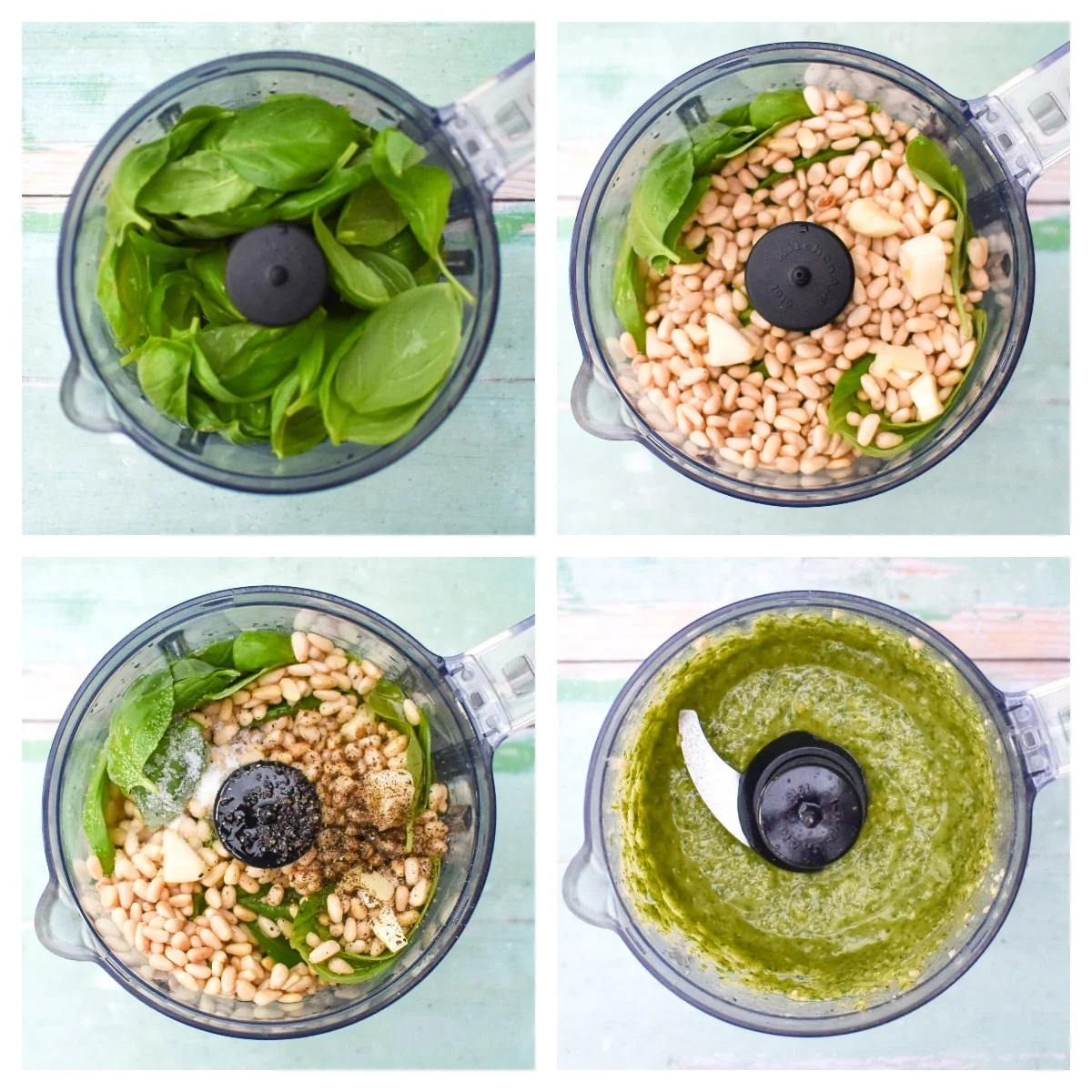 - Now make the pesto. You can make it in a pestle and mortar, food processor or blender. (full recipe below in the printable recipe card).